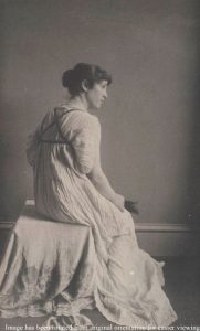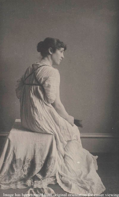This photo is of Millet’s wife Lily in one of his Greek dresses, showing the Strophion strap around her top that closed and held the dress in place.